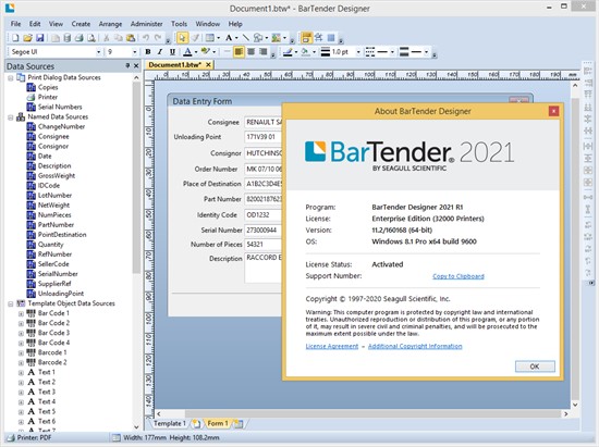 BarTender下载安装最新版是一款功能强大的条码打印软件。该软件提供直观的设计和打印界面以及强大的集成功能。BarTender下载安装最新版无论是设计还是打印都好用,而且现在已经覆盖了破解补丁,打开就可以免费试用所有功能。该软件支持上千种兼容的标签标准,让用户可以完全定制自己的标签、标签、条码、组件、智能卡编码和符号设计。通过帮助用户轻松设计各种条码,有效提高用户工作效率,设计更多容易地。