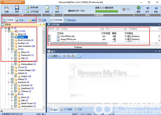 4、我们等待Recover My Files软件检测完成后,我们在软件界面的左侧就可以看到检测出来的文件、文件类型选项,在界面的右侧是详细的数据信息,我可以从下图中进行查看。