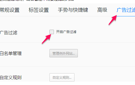 3,默认开启广告过滤,去掉主动防御和内容推荐服务;