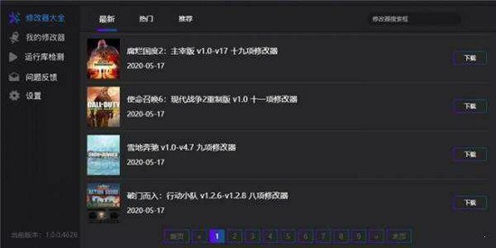 4、在初始界面,您可以看到最新的游戏修改内容和搜索根据您的需要。
