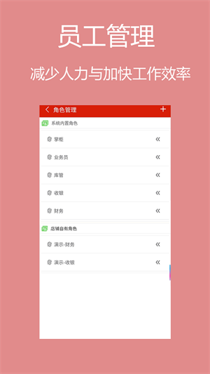 2.通过应用程序可以管理卖场内的职员,确认工作状态。
