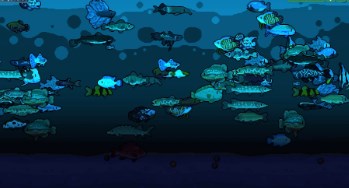 1.简单的控制方式,最开始只需要点击就会出现一条等级最低的鱼儿。