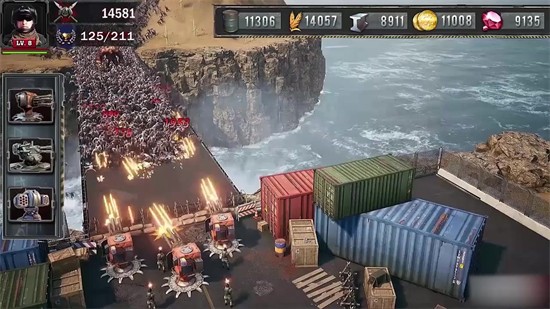 2.在大量僵尸到来时建立坚固的塔防设施,在不断战斗的过程中锁定不同的战车炮台。
