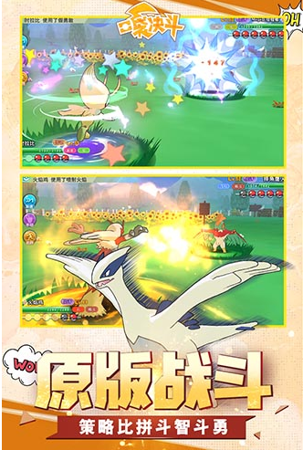 1、口袋决斗游戏游戏采用卡通的角色形象,完美还原口袋妖怪中的精灵。