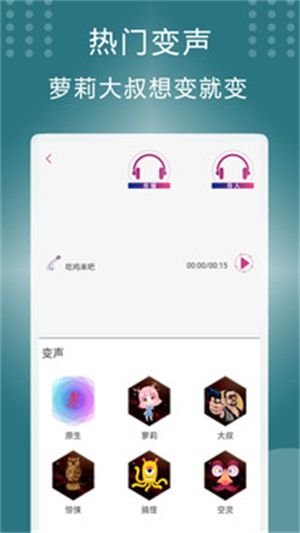 1.方便快捷的超级变声器,在聊天、玩吃鸡游戏中随时变声互动。