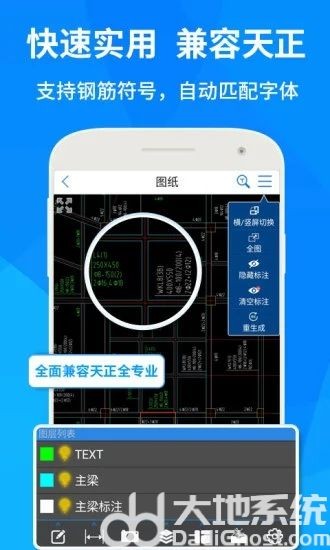 手机cad快速看图免费版下载功能强大、简单好用,可以帮助用户查看AutoCAD所有版本的DWG图纸。手机cad快速看图免费版下载支持钢筋符号显示,图纸显示完整,无需安装字体,实用性非常高的呀。用户们使用该软件可以快速查看图纸,也能给图纸添加标注,还能完成图纸的测量哟,丰富多样的实用功能,深受用户的认可与支持哟。