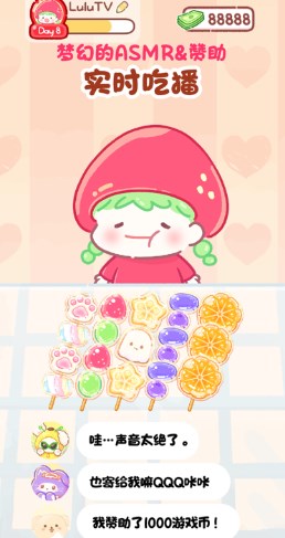 整体来说就是一个吃播游戏会有粉丝来投稿让你做什麽糖葫芦如果达成那位粉丝的需求就可以赚到更多钱