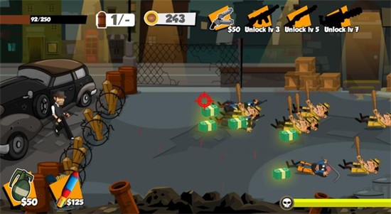 黑帮城市战争防御是一款非常刺激的都市动作冒险手游。游戏采用精致的卡通画风设计,整个画面看起来非常精致舒适。黑帮城市战争防御的游戏玩法很有趣,你还可以在游戏中拥有丰富的黑帮元素,您可以使用各种武器和配件来增加您的战斗力并获得更强大的武器。 需要注意的一件事是在消灭敌人后收集现金。每次都可以帮助你获得更多的奖励。