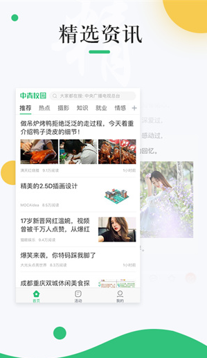 1、中青校园app可以关注自己感兴趣的新闻资讯类型