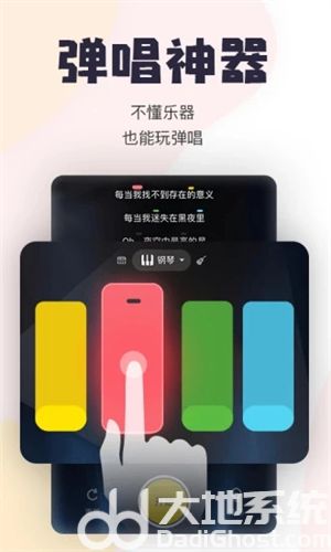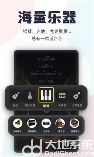 1.提供钢琴、吉他2种乐器弹唱。按键提示,