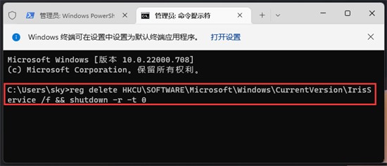 输入该命令后,会删除IRIS服务的注册表值,系统自动重启后即可解决问题。