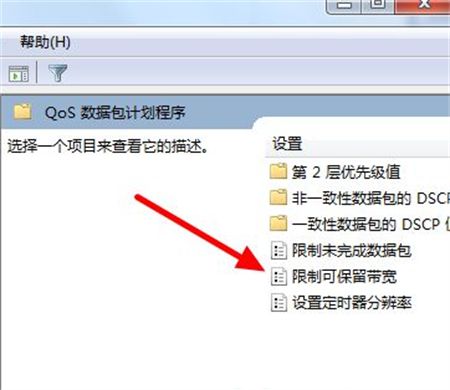 3、紧接着,双击限制可保留带宽。