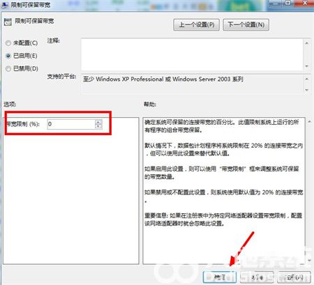 6、手动将20修改成0,最后点击确定。网速限制就解除了。
