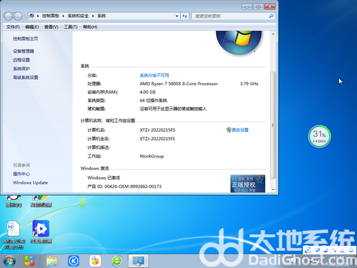 大地系统win7超小系统gho镜像版有着极为小巧的镜像包体,下载极快,安装起来也很快,用户不需要等很久。并且大地系统win7超小系统gho镜像版安全过程不需要值守,对于用户来说装机非常省事。它内置系统维护工具,在出现故障的时候,用户可以调出对应的工具去进行诊断,系统还会提供实用的解决办法,帮你快速完成修复。