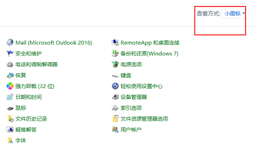 2、打开之后进入控制面板设置框,在页面的右上方有一个“查看方式”。