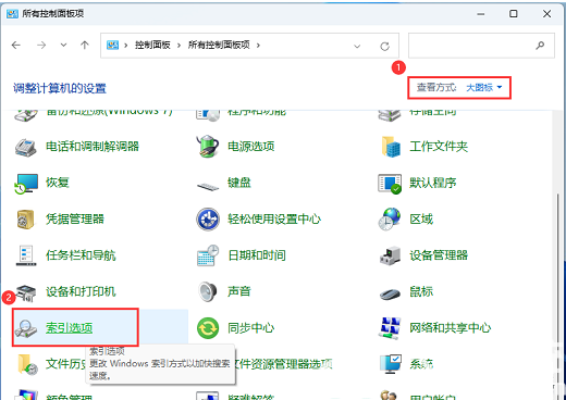 索引关系着用户在系统中的搜索效率,如果索引损坏或删除的话,搜索功能就会出错,那么win11如何重建索引呢?你先打开控制面板,切换到大图标查看,之后找到索引选项进入,接着点击高级按钮,在打开的高级选项窗口中点击重建,之后会出现弹窗,确定即可,最后就会出现“索引完成”的提示,这个时候就算重建好了。