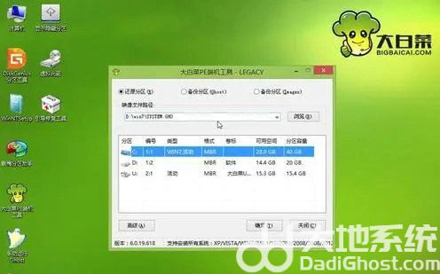 2、大白菜win7iso镜像包32位开机加载界面预加载速度更快