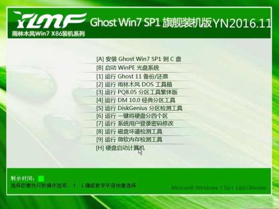 雨林木风ghost win7 32位旗舰版启动菜单界面