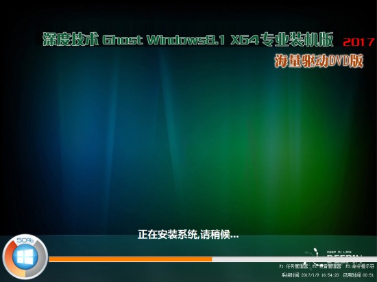 深度技术ghost win8.1 64位专业装机版 V2017.03系统下载采用Windows8.1 64位原版制作而成,集成了最新的安全补丁和其它系统升级程序,可以通过微软正版验证,支持在线更新。深度技术win8系统 适用于笔记本、品牌机,也支持组装兼容机,安装后自动激活,可供品牌机专卖店及普通用户安装使用,本系统可以一键无人值守安装、自动识别硬件并安装驱动程序,大大缩短了装机时间,5~8分钟内即可安装完成。