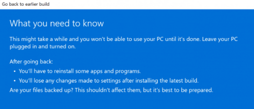 第 5 步:在下一步,设置将告诉你,如果你确定重新安装几个应用程序后,降级到以前的版本。