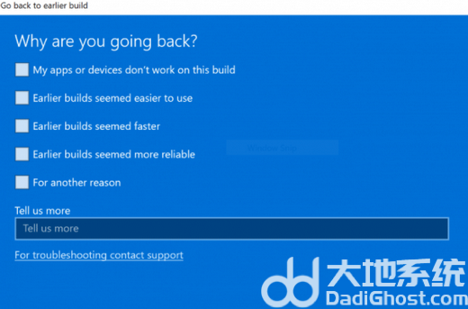 第 3 步:您可以指定要返回 Windows 10 或旧版本的 Windows 的原因。选择任何原因,然后单击下一个。