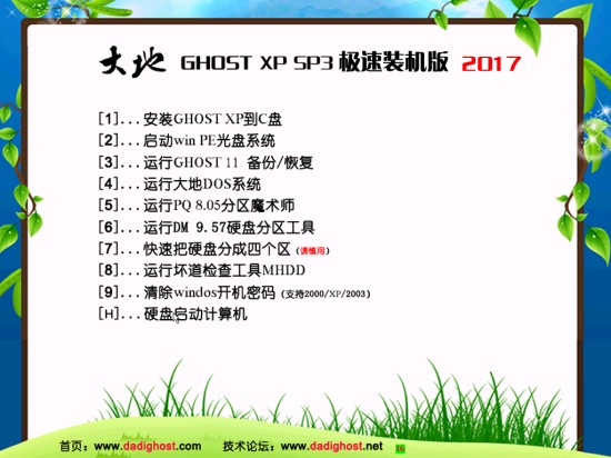大地dadi ghost xp sp3极速装机版菜单界面图