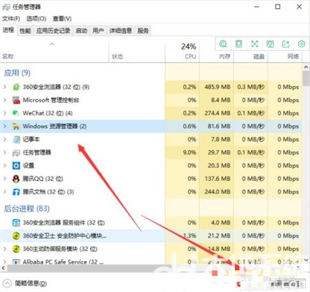 2、切换到进程选项中,点击windows资源管理器,再点击右下角的重新启动。