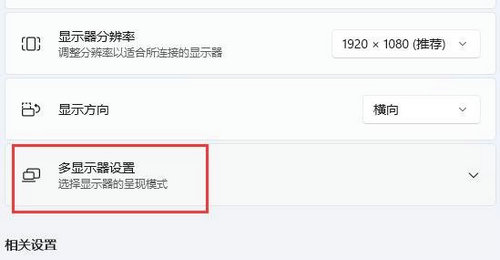 4、再点击展开其中的多显示器设置(选择显示器的呈现模式);