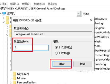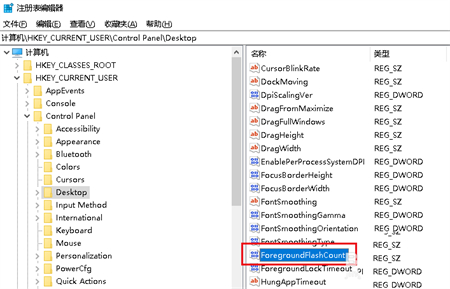 5、在右侧找到ForegroundFlashCount,双击打开。