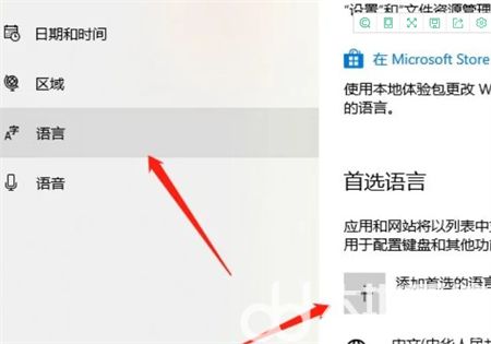 点击左边的“语言”,选择右边的“首选语言”。
