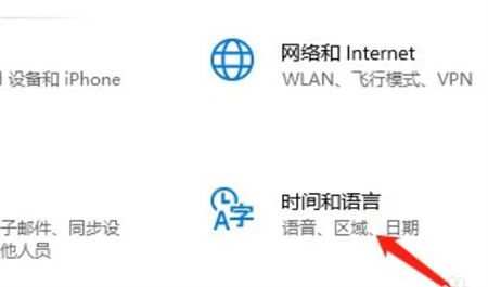 进入win10界面,点击左下角的选项,点击“时间和语言”选项。