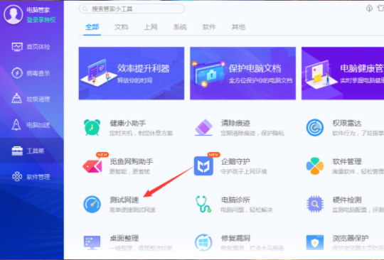 腾讯电脑管家测网速教程