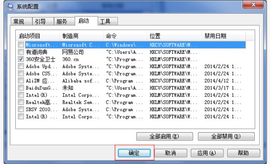 在窗口列表项目中选择,不需要启动的项目不勾选,要自启动的项目勾上,一般杀毒软件安全产品建议自启动。其它都可以把勾去掉,加快其开机速度,设置好以后点击确定完成设置。