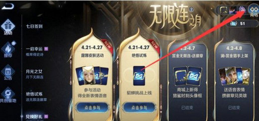 3、在该活动的界面右上角就会有无限连商店,玩家点击打开即可兑换奖励