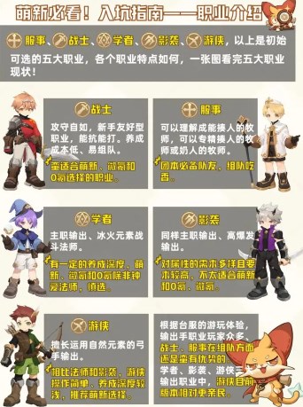萌新推荐选剑士(战士)、游侠(射手)。剑士养成成本低,能扛能打,组队容易。