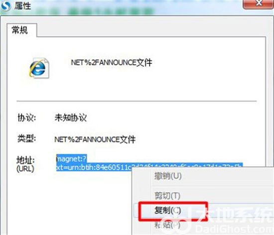 4、在“属性”窗口中,复制磁力链接。