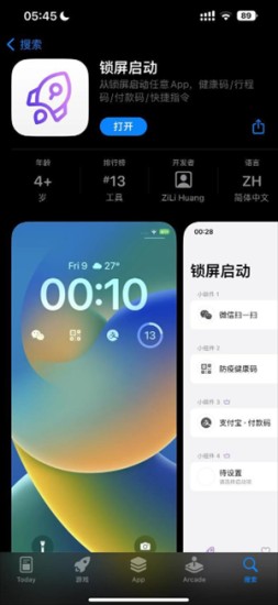 1、首先打开苹果手机App Store,查找锁屏启动软件并且点击下载。
