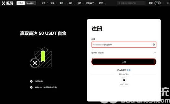 1、打开欧易OKX交易所官网(点击立即进入),在首页输入邮箱,点击“注册”