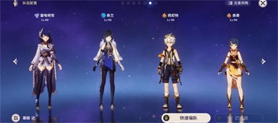 1、上半阵容:雷电将军、夜兰、班尼特、香菱。