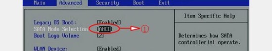 Win7系统:需要在BIOS设置中将SATA Mode Selection设定为AHCI。