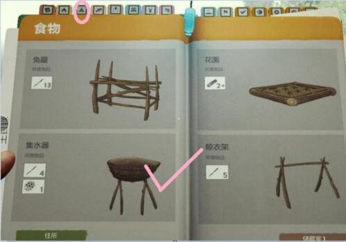 因为是集水是属于生存技能, 所以集水器是不能合成的。既然它是技能,我们就点开生存技能手册,在上方食物栏里找到集水器即可。