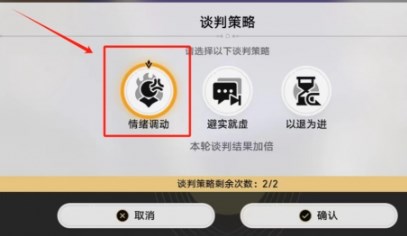 2.第二回合:选择谈判策略里面【情绪调动】,再选择【我曾见过丹恒本人】,即可直接谈判成功。