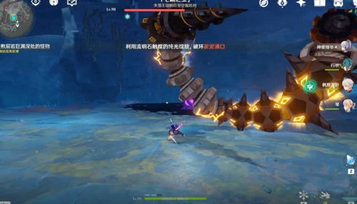 5.净化大晶石:观察这个大晶石上缠绕的黑气源头方向,就是需要净化的机关位置。这里高处有几个地方的黑泥涌口是二阶的,流明石触媒等级如果不够的话不能完全清除它,不过也不影响给机关充能。)