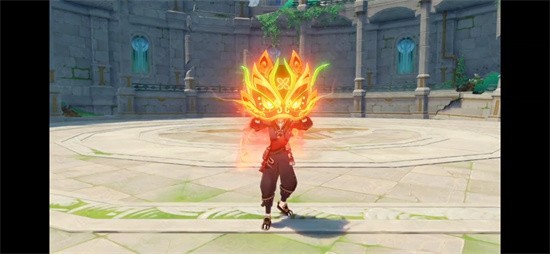 进入舞兽态势,获得火元素附着冰恢复一定的生命值,召唤祝兽·文仔协助战斗。