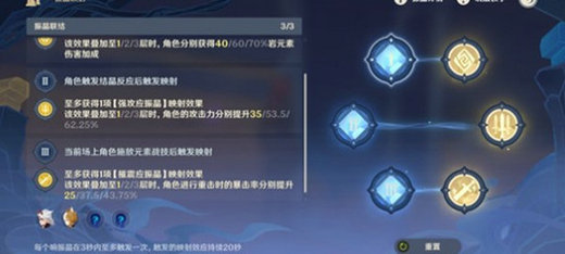 振晶的触发条件【1)造成岩元素伤害后映射和2)触发结晶反应后映射】所以推荐在配队时带一个岩元素角色。这次的试用角色无治疗角色,操作不太好的小伙伴可以多带个治疗角色或护盾角色提高容错率。任意主C队根据组队成员选择相应收益最高的振晶配置,可达到最好的效果!