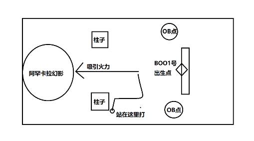 一阶段,猎人不累,术士和泰坦的话注意先清小怪,紫色子弹不用太省,因为BOSS可以慢慢磨的,尽量在OB点徘徊,BOSS特别喜欢在OB点这两根柱子这里左右来回走,这时候你就可以跑到他背后疯狂输出再绕走。