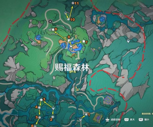 1、在4.8版本限时地图「希穆兰卡」的第一阶段中,共有11个摩拉盒,其中包括4个石堆和7个金属盒。每个盒子随机掉落1万、1.5万或2万摩拉,具体收集位置如下图所示。