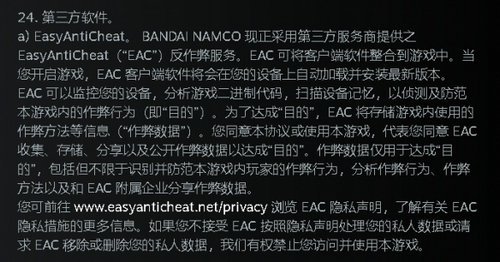 艾尔登法环是以正统黑暗奇幻世界为背景的动作RPG游戏,很多玩家都发现游戏的终端用户许可协议第24条显示,游戏将采用EAC反作弊系统,打造健康的游戏环境,有些玩家想要关掉这个反作弊器,可以将数字字符串1245620添加到文件中,再点击exe文件启动游戏就可以咯。