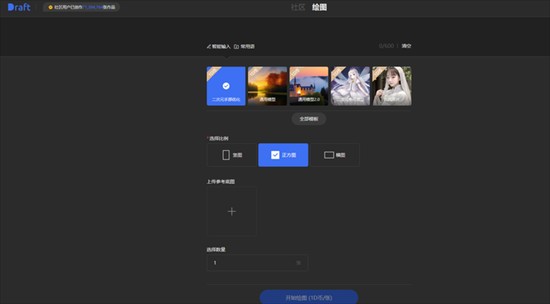 生成的方法很简单,输入你想生成的AI作品类型,然后再输入详细的人物穿着一个表情,然后在下方选择图片生成比例,以及上传参考图片,最后点击开始绘图就可以生成一张好看精致的AI作品了。