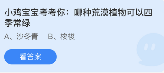 2、小鸡宝宝考考你哪种荒漠植物可以四季常绿?